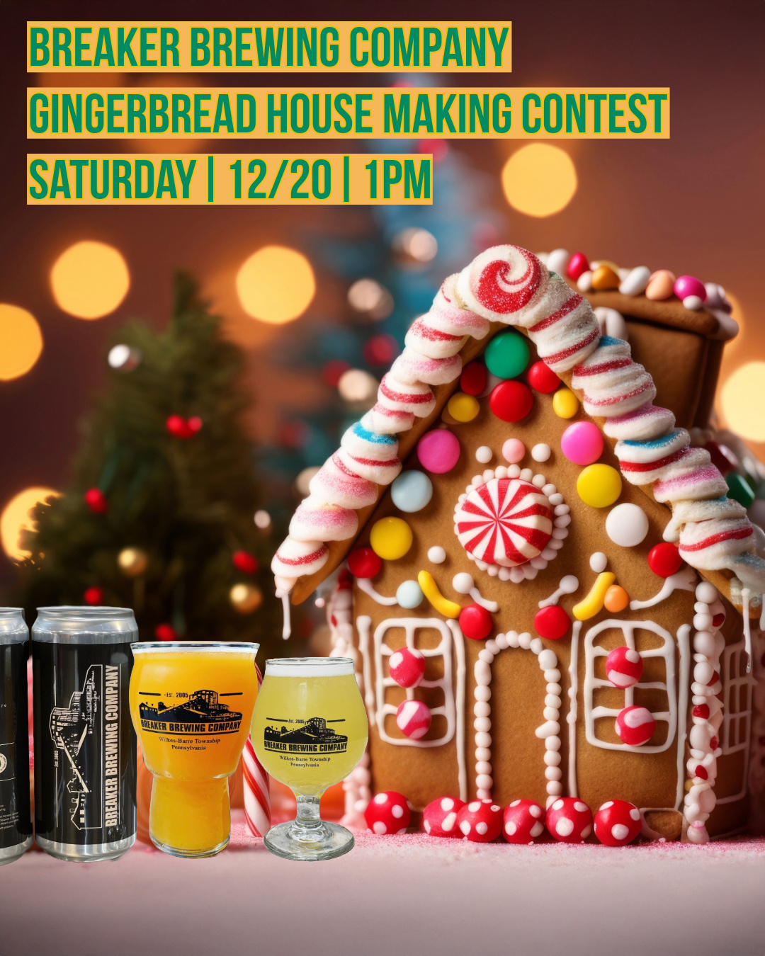 Get into the holiday spirit and show off your creativity at our Gingerbread House Making Contest! Whether you’re a seasoned pro or a first-time decorator, this sweet event is perfect for all ages and skill levels. You’ll win bragging rights and a spectacular Breaker Brewing Company prize TBD.