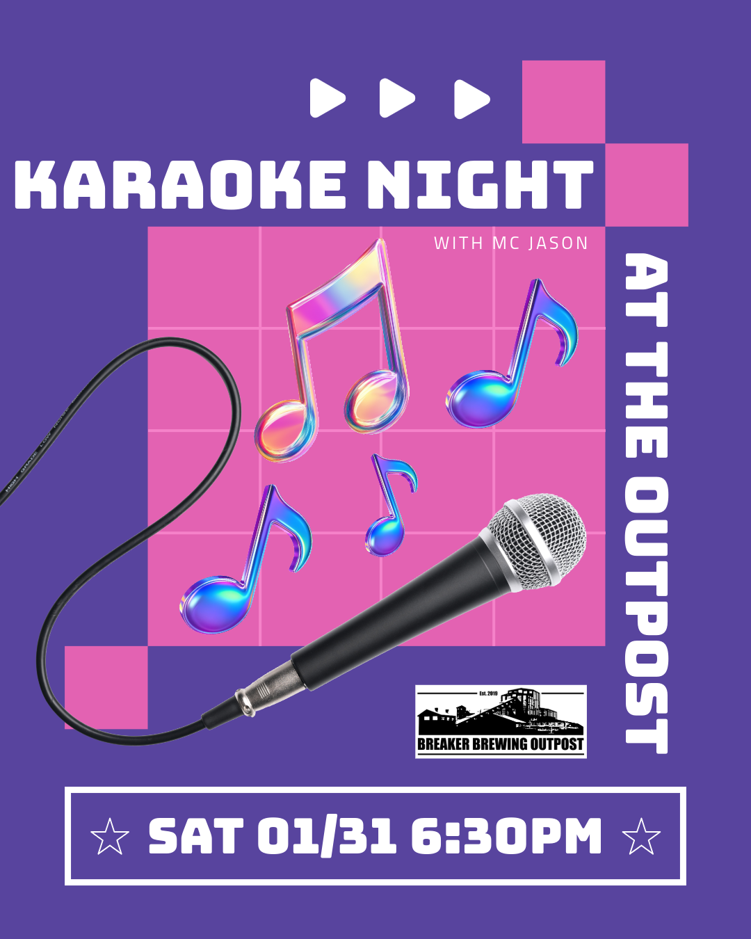Don’t miss out on Karaoke Night, Saturday, 01/31, at The Outpost starting at 6:30pm until 9:30pm with your host MC Jason.