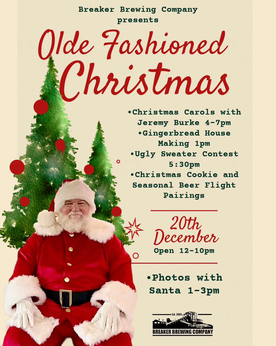 Join us for a fun Olde Fashioned Christmas🎄at Breaker Brewing Company, Saturday 12/20 from 12-10pm. The day will be filled with festivities for all to enjoy.