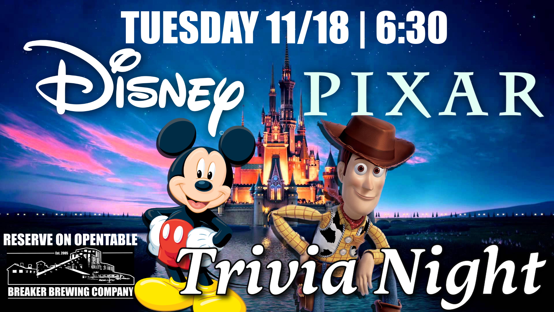 Disney and Pixar Trivia Night at Breaker Brewing Company